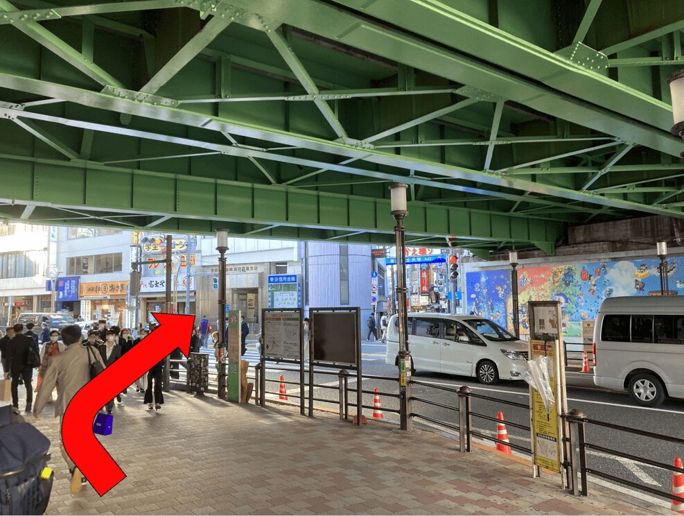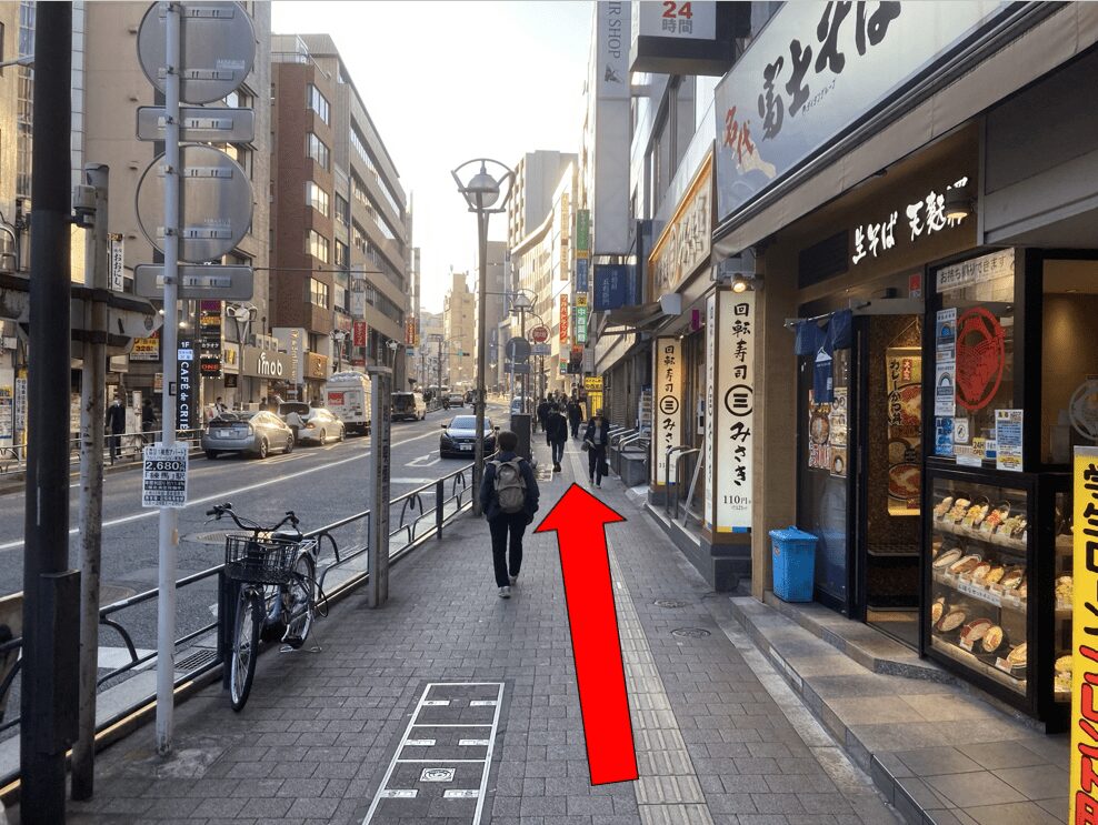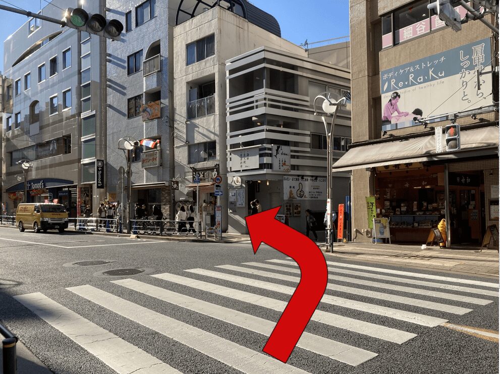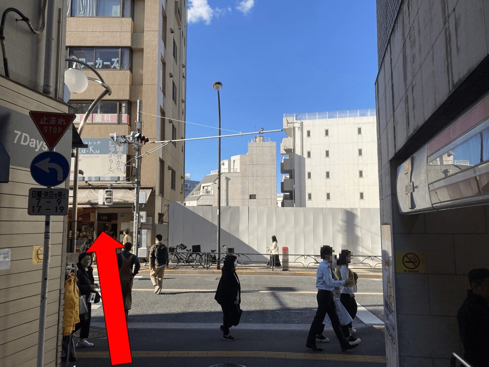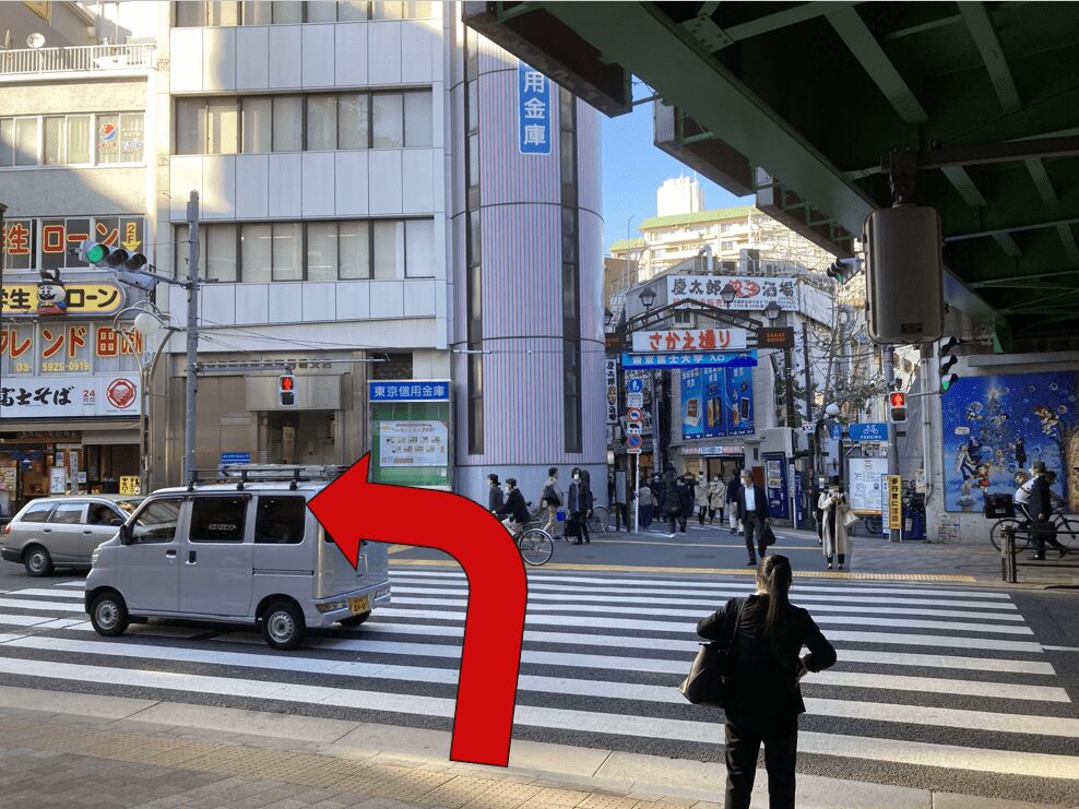 ②駅を出てそのまま横断歩道を渡ったら左方向に進みます
