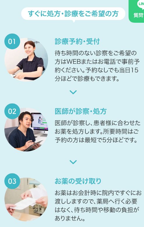 診察後に当院運営のECサイトから処方薬を購入してください。当日17時までの購入で即日発送します。