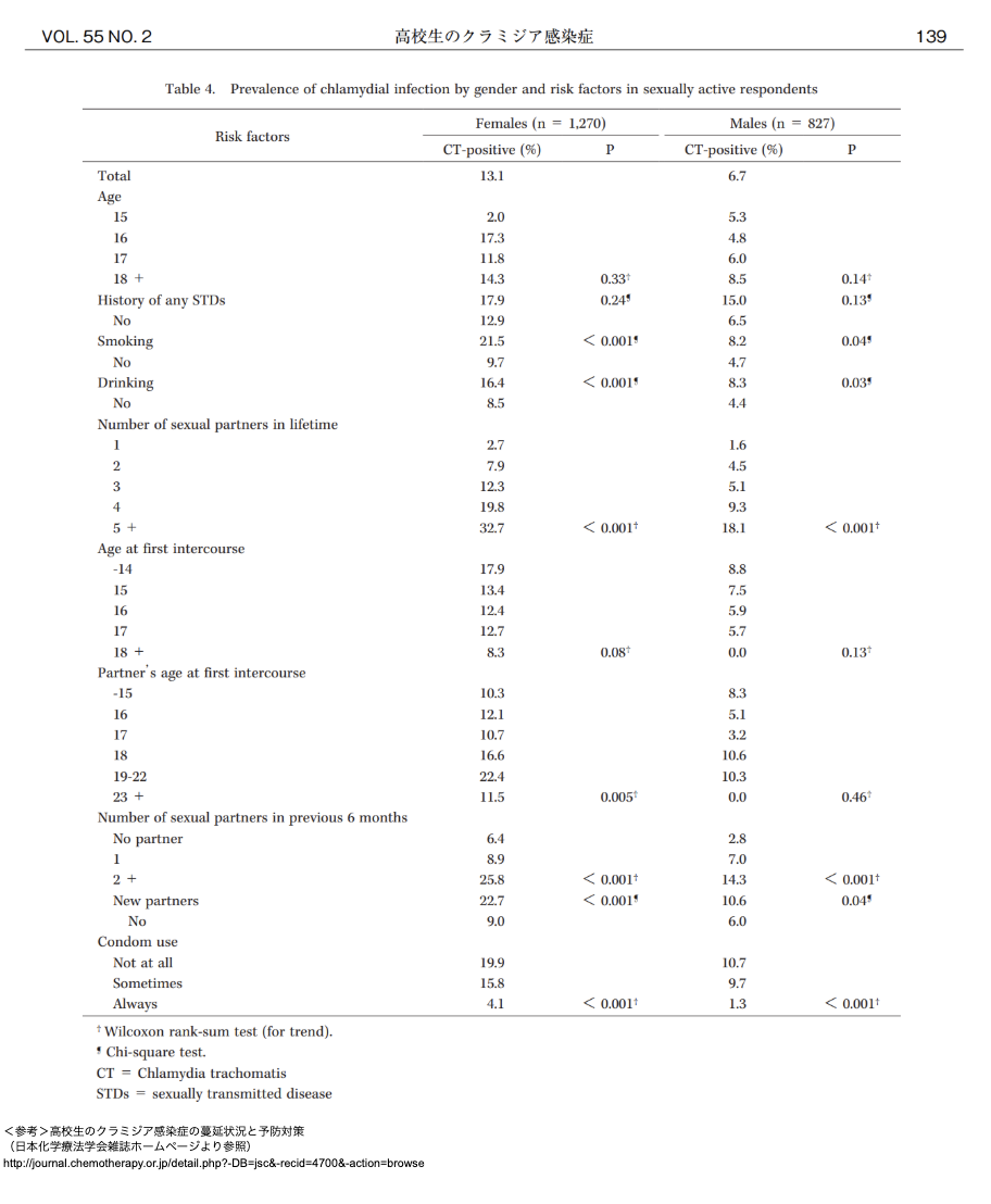 高校生のクラミジア感染症の蔓延状況と予防対策